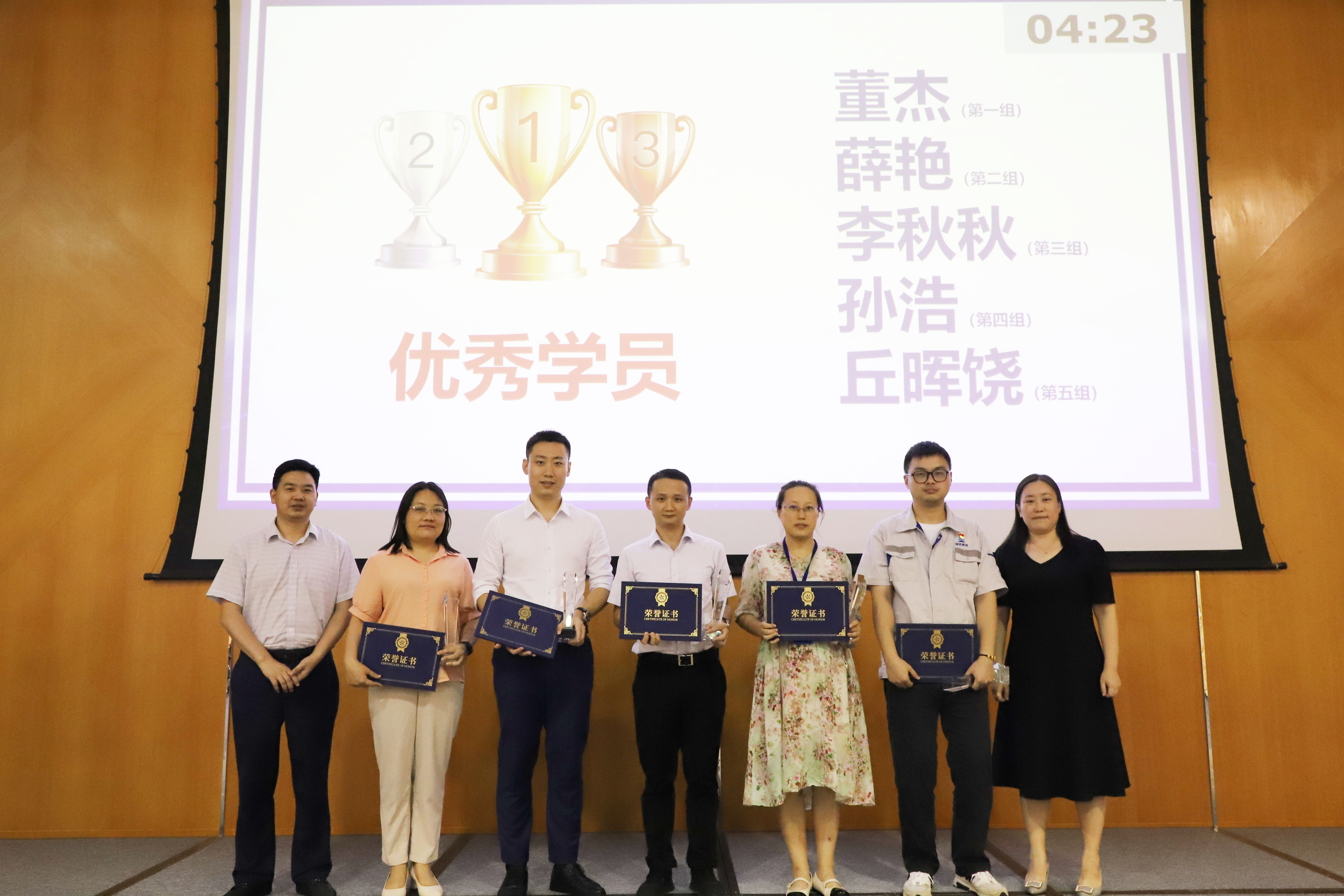 張文磊、汪晶晶、覃楚東、孫浩、谷濤分別代表各自小組匯報了行動力學習的課題成果,各組聚焦工作中實際難題,運用“核心四問”“兩向推理”“課題分析”等方法,分析了產品改善、外協件加工、檢測樣品流轉、信息獲取及人員培訓等實際工作中的難點和堵點問題,提出了基于制度、流程、人員、技術等多維度的解決方案。現場6位評委分組點評,提出了很多好的意見,并評選出5位“優秀學員”和1個“優秀團隊”