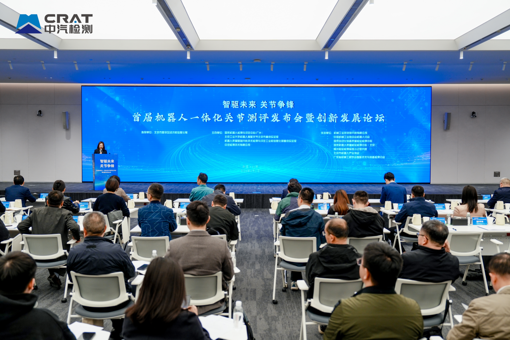 4月2日,在北京市昌平區經濟和信息化局的指導下,以“智驅未來 關節爭鋒”為主題的首屆機器人一體化關節測評發布會暨創新發展會議在北京昌平區成功舉辦。本次活動由國家機器人檢測與評定中心(廣州)、北京工業大學機器人智能關節北京市重點實驗室、機器人質量基礎共性技術檢測與評定工業和信息化部重點實驗室、中汽檢測技術有限公司聯合主辦,由機械工業規劃研究院有限公司、中國機械工業聯合會機器人分會、常州檢驗檢測標準認證研究院、北京市機器人產業協會、廣東省機械工程學會智能技術與裝備檢測分會等協辦,匯聚了政產學研用各界代表,共同見證國內首個機器人一體化關節領域測評成果的發布,共商國產核心零部件高質量發展路徑。
