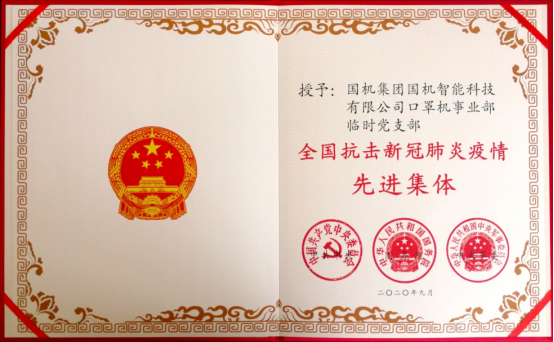 9月8日上午10時(shí),全國(guó)抗擊新冠肺炎疫情表彰大會(huì)在北京人民大會(huì)堂隆重舉行,國(guó)機(jī)集團(tuán)國(guó)機(jī)智能科技有限公司口罩機(jī)事業(yè)部臨時(shí)黨支部榮獲黨中央、國(guó)務(wù)院、中央軍委表彰的“全國(guó)抗擊新冠肺炎疫情先進(jìn)集體”、“全國(guó)先進(jìn)基層黨組織”稱(chēng)號(hào)。國(guó)機(jī)智能黨委副書(shū)記、總經(jīng)理彭兵出席表彰大會(huì),并受邀參加當(dāng)天下午舉行的國(guó)資委學(xué)習(xí)貫徹全國(guó)抗擊新冠肺炎疫情表彰大會(huì)精神座談會(huì)。