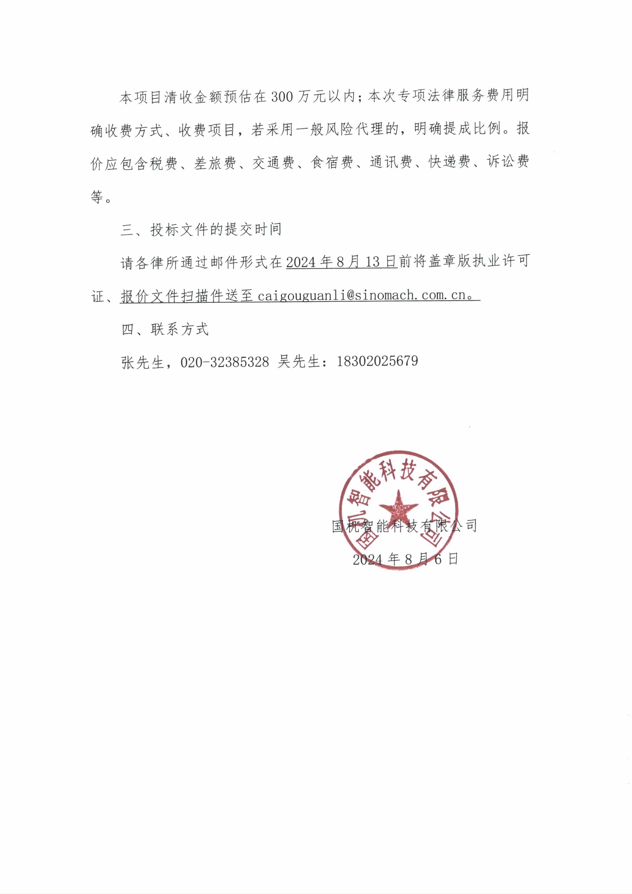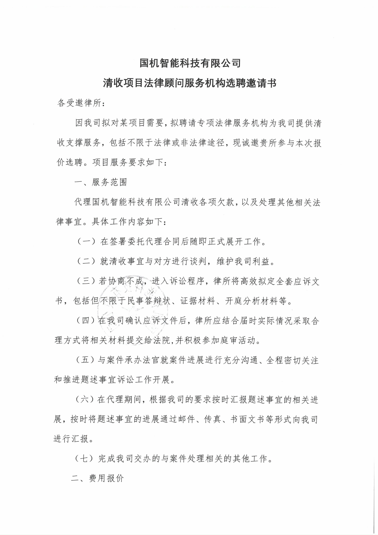 國機智能科技有限公司清收項目法律顧問服務機構選聘邀請書